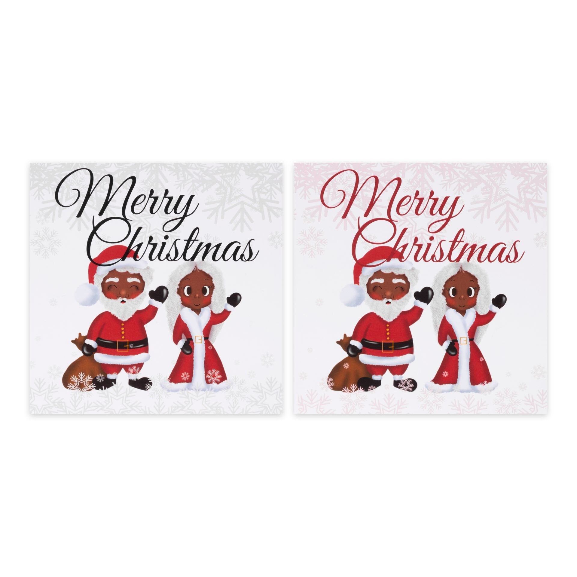 8 Black Santa & Mrs Claus Christmas Cards in Red & Black designs.